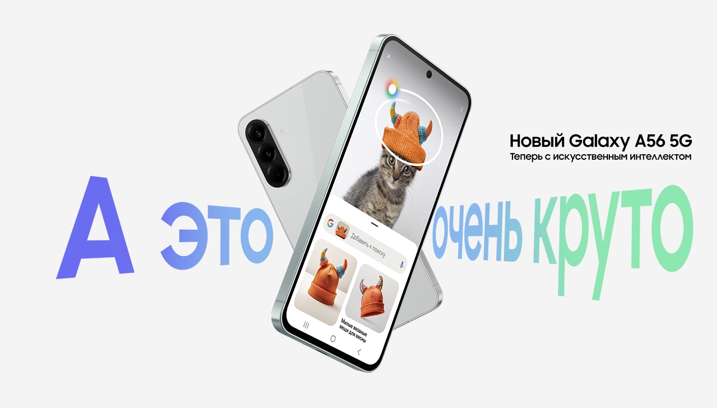 Благодаря уменьшению толщины до 7,4 мм, смартфон Galaxy A56 5G очень эргономичен и легко помещается в руке или кармане. Камеры расположены в новом линейном формате, что придаёт вашему смартфону неповторимый стильный облик.