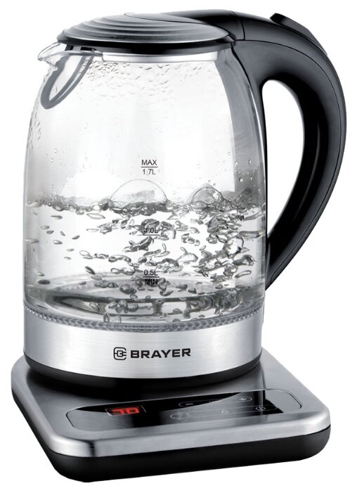 Благодаря наличию терморегулятора прибор Brayer BR1003 способен поддерживать температуру в шести режимах в течение двух часов. Комфортной эксплуатации способствует наличие шкалы уровня воды, приятной голубой подсветки и ярких индикаторов. При закипании или достижении заданной температуры срабатывает звуковое оповещение. Также имеется защита от случайного включения без воды.