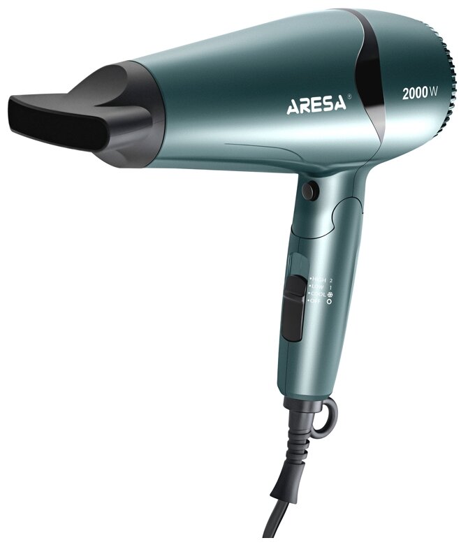 Прибор Aresa AR-3215 действует с мощностью сушки 2000 Вт при наличии трех температурных и двух скоростных режимов.