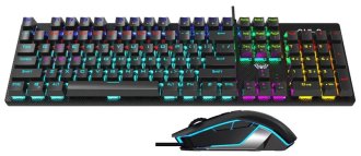 В набор AULA T640 вошла оптическая светодиодная мышь с семикнопочной конструкцией, которая по своей форме удобна для хвата правой рукой. Вы сможете выбрать наиболее оптимальный режим работы сенсора из четырех вариантов: 800, 1200, 1600 и 2400 dpi. Оба представителя компьютерной периферии из данного набора имеют многоцветную подсветку, за счет которой они станут настоящим украшением компьютерного стола. Устройства подключаются к компьютеру при помощи 1.6-метровых кабелей с интерфейсами USB, которыми оснащаются практически все ПК, представленные на рынке.