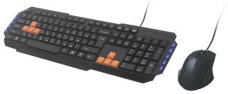 Комплект из проводной клавиатуры с классической раскладкой, мультимедийными кнопками и интерфейсом USB и оптической игровой мыши.
