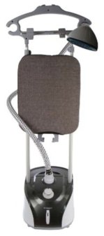 Scarlett SC-GS130S19 устанавливается на пол, вещи размещаются на плечиках, обработка ведется при помощи ручки, для которой предусмотрена насадка со щетинками для обработки тканей с ворсом. Для удобства предусмотрена перфорированная панель с мягким покрытием. Обработка паром позволяет не только разгладить складки и заломы, но и освежить краски, избавить от неприятных запахов.