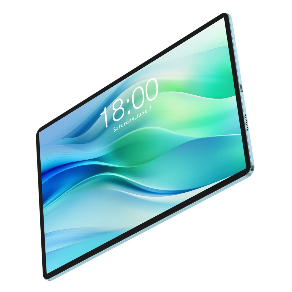 Teclast P50 заключён в прочный алюминиевый корпус. Толщина устройства составляет всего 8 мм, а вес — 543 г, что делает его удобным спутником в поездках и при повседневном использовании. Матовая бирюзовая задняя крышка и закруглённые края придают планшету современный и элегантный вид.