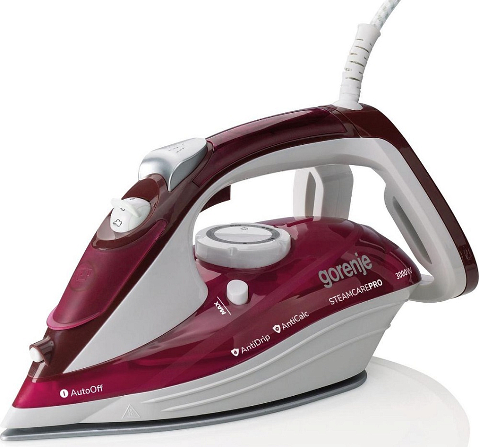 Утюг Gorenje SIH3000RBC имеет высокий уровень защиты. Устройство автоматически отключается, если находится несколько секунд в неподвижном положении. Длинный шнур обеспечивает свободу передвижения, что особенно удобно при разглаживании постельного белья и других объемных вещей. Скорость парового удара составляет 105 г/мин.